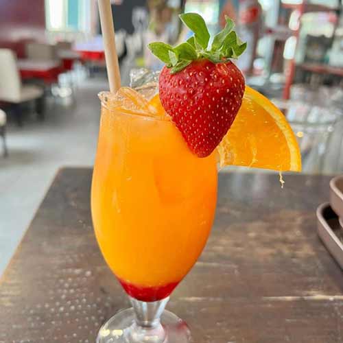 Tequila Sunrise (Tequila, sumo de laranja, granadina e groselha)7,50€
